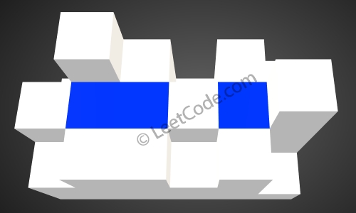 After the rain, water is trapped between the blocks. The total volume of water trapped is 4.