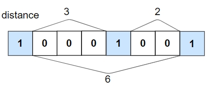 // number of zeros in-between 1-bits